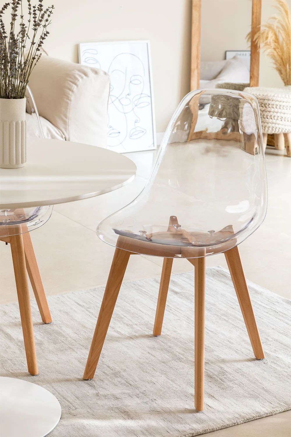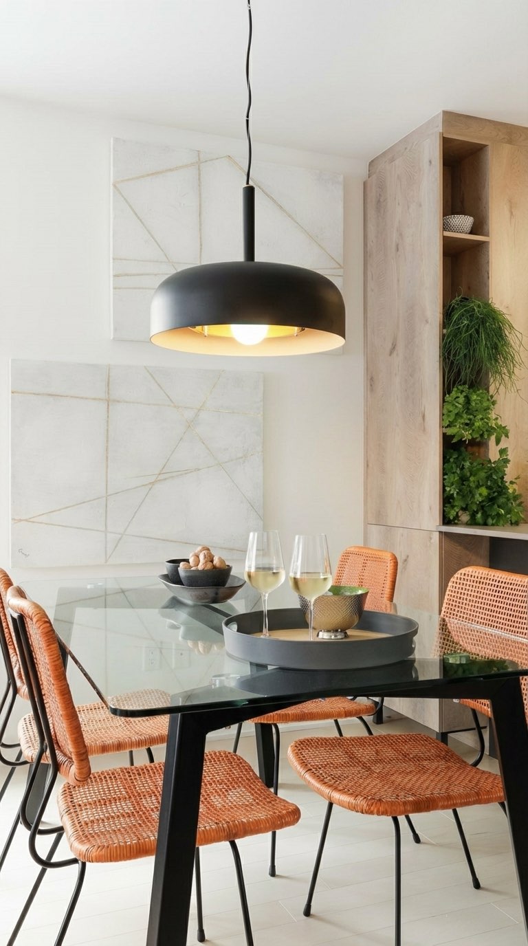 Non è una soluzione per tutti gli stili, ma in una stanza piccola un tavolo con le sedie trasparenti fa una differenza enorme rispetto a un set completamente opaco. L’occhio attraversa il mobile invece di fermarsi sopra, e lo spazio sembra meno affollato.
